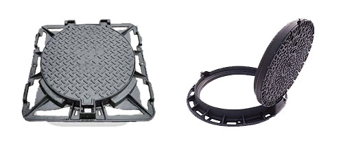 • Tapa y marco de Hierro Dúctil con revestimiento bituminoso.